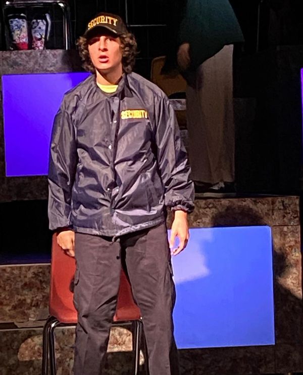 I played two roles, Chris and the Security guard. I'll tell yah, Chris was a favorite character, because he was just Chris. He definitely had problems... The Security Guard, OH MY GOSH. Rehearsals for the security guard were so stressful. Because this guy is supposed to be tough and mean and a bully (as are high school security). When I say I struggled portraying that, I mean it, I struggled hard. For many rehearsal days I just simply couldn't get it, but then one day, BOOM: I was an asshole. The Security Guard was a challenge, but I'm glad I actually got it.